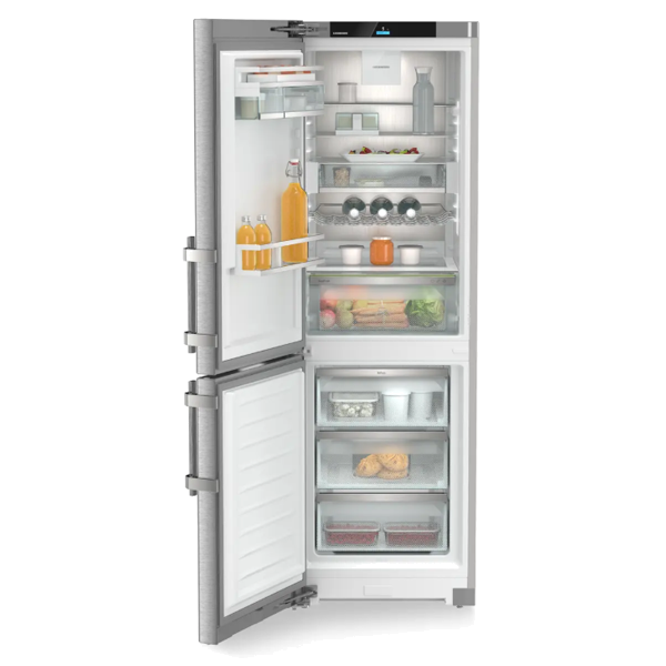 Consumo de energia ano / 24 h: 161 / 0,441 kWhCapacidade útil total : 331 lCapacidade útil: Refrigerador: 228,7 l / Congelador: 103 lNível de ruído / Classe de emissão de ruído: 34 dB(A) / B, SuperSilentClasse climática: SN-T (entre +10 °C to +43 °C)Porta / laterais: SmartSteel / CinzentoDimensões exteriores em cm (A / L / P) 185,5 / 59,7 / 67,5TFT 2,4" - ecrã a cores por trás da porta - Tecnologia Touch & SwipeEcrã digital de temperatura para o frigorífico e congeladorSmartDeviceBox incluídaSinal de aviso em caso de anomalia: visual e acústicoAlarme de porta: visual e acústicoElemento de aquecimento na parede do lado esquerdo, adequado à combinação com outros frigoríficos, congeladores e/ou garrafeirasPuxadores SlimLine com mecanismo de abertura integradoPuxadores de transporte, à frente e atrás, rodízios de transporte atrásPés ajustáveis à frentePorta de abertura reversível, esquerdaBorracha substituívelParede traseira em aço inoxidável com SmartSteelCOMPARTIMENTO FRIGORÍFICOPowerCooling com Ar Novo filtrado através de carvão activadoPrateleira Premium GlassLine com suporte de garrafas, compartimientos VarioBox extraiveis, Bandeja de ovos ajustável, Manteigueira4 prateleiras GlassLine, das quais 1 são divididasVarioSafePrateleira para garrafasPainel de luz em ambos os lados1 gaveta EasyFresh-Safe em calhas telescópicasCOMPARTIMENTO CONGELADOR3 gavetas, VarioSpaceTabuleiro de gelo com tampaIluminação LEDArmazenamento em caso de avaria: 20 hrCapacidade de congelação em 24h: 10 kg2 acumuladores de frioAcessórios em vidro de segurança