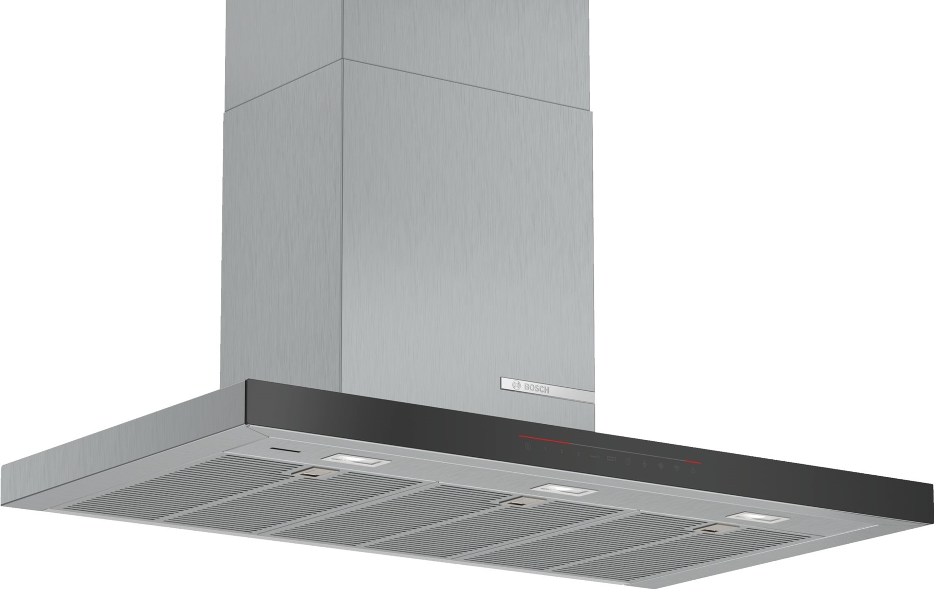 90 cm, box design (inox e frontal vidro preto, c/ DirectSelect), ilum. LED (dimmer, softlight), HC (conexão placa-exaustor), Sensor PerfectAir, EcoSilence Drive, 3+2 níveis intensivos, 430/873 m3/h, interior blindado, Cl. Energética A+ (A-A-B-55dB)