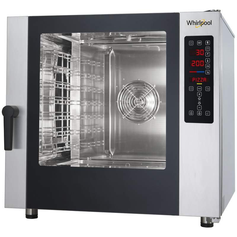 Forno Elétrico Profissional para pastelaria e gastronomia - 6 níveis - Inserção dupla para tabuleiros GN1/1 e 60x40cm - 3 métodos de cocção: convecção + combi + vapor 100% - Controlo digital - Possibilidade de guardar até 200 receitas - 4 fases de cocção - Sonda - Ligação USB e controlo HACCP - Programas de lavagem automáticos - Guias com 80cm de distância - Luz interior - Ventoinha reversível - Delay - Trifásico. Dimensões (LxPxA): 840 x 996 x 950 mm