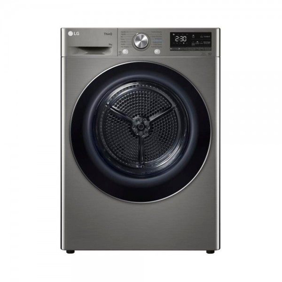 Máquina de Secar Roupa LG com 9Kg de capacidade Painel LED Tátil Iluminação do tambor Tipo de secagem: Condensação por bomba de calor Dual Inverter Heat Pump Limpeza automática do condensador EcoHybrid Classe de eficiência energética: A+++ Consumo energético anual: 194 kWh Nível de emissão de ruído: 62 dB Classe de eficiência de condensação: A Wi-Fi Smart Diagnosis Programas de secagem: Algodão; Mix; Fibras; Edredão; Toalhas; Anti-alergias; 30 minutos; Roupa desportiva; Lãs; Tecidos delicados; Secagem com cesto; Arejar quente; Arejar frio; Download de novos programas Níveis de secagem: Pronto a Engomar; Pronto a Guardar; Secagem extra Final diferido Antivincos Luz do Tambor Início remoto Adicionar mais roupa Indicação do progresso da secagem e tempo restante Indicação de limpeza de filtros Indicação de esvaziamento da gaveta de condensação Bloqueio para crianças Monitorização do consumo energético Pés ajustáveis Porta reversível Acessórios: Suporte para secagem de calçado; Tubo de ligação ao esgoto Dimensões exteriores (LxAxP) 600x850x660 mm