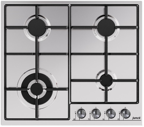 - Inox - 60 cm - 4 queimadores a gás - Acendimento no manípulo - Grelhas esmaltadas - Fornecida em gás butano - Injectores gás natural em dotação