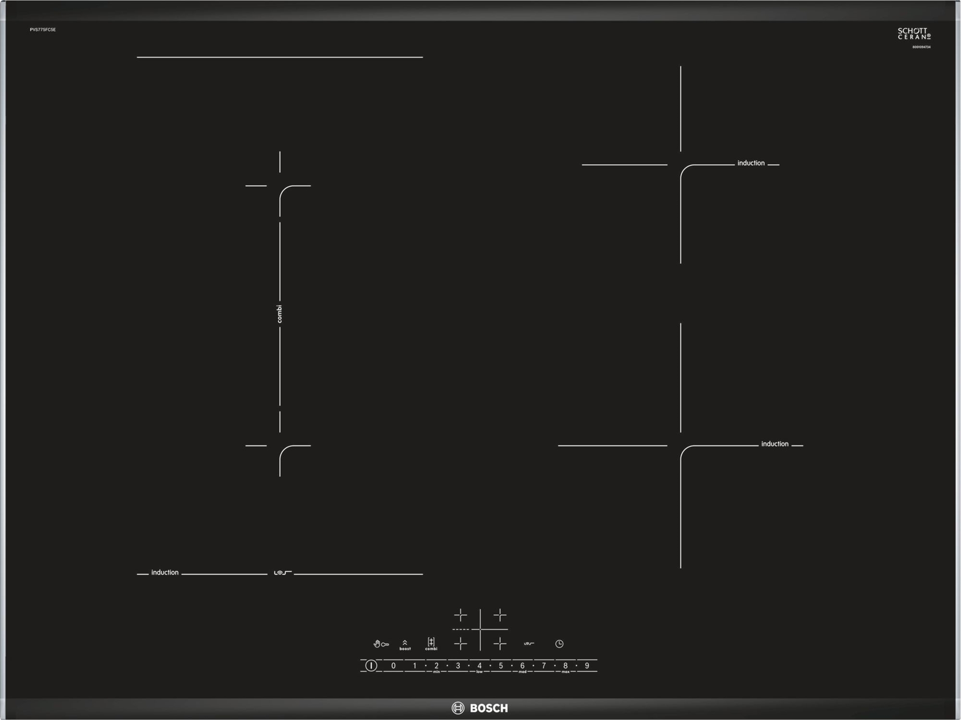 70 cm, CombInduction, 4 zonas ou 2 zonas+1 CombiZone, DirectSelect, PerfectFry, PowerBoost, temporizador, ReStart, QuickStart, consumo energia, Comfort Design