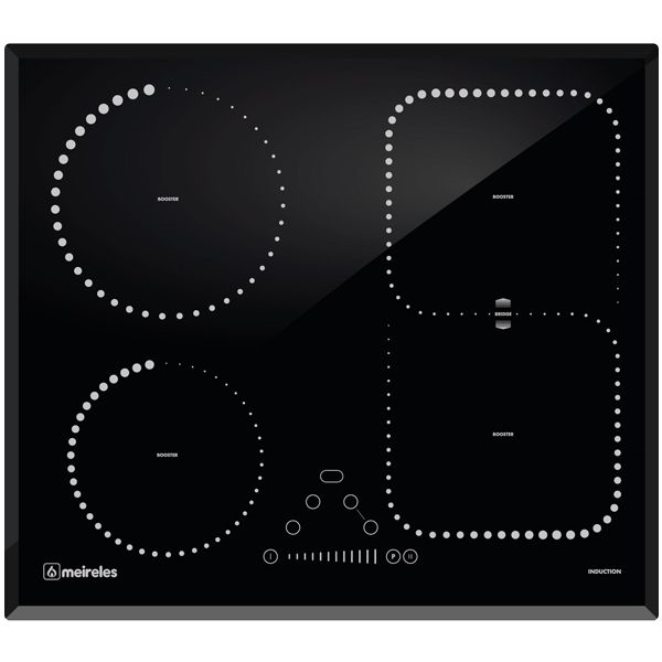 Placa vitrocerâmica de indução 60cm - Vidro biselado - Touch control slider - 4 zonas booster - 1 zona Bridge - Programador - Função Pause